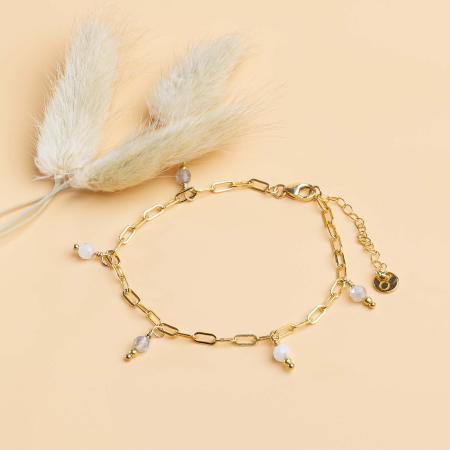 Lindo brazalete en cadena de rectángulos y piedras semipreciosas naturales. Cierre mosquetón.