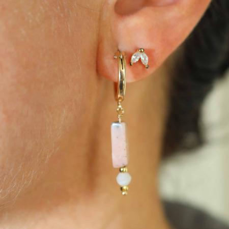 Estos exclusivos y modernos aretes de ópalo rosa son el accesorio perfecto para adornar tus orejas. También disponible en amazonita.