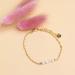 Brazalete delicado en cadena fantasía alternada adornada con cuatro piedras semipreciosas naturales. Cierre mosquetón.