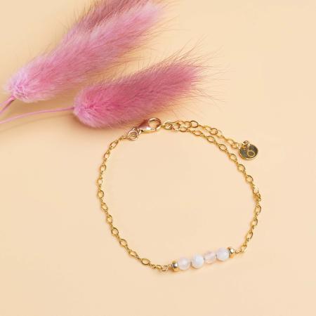 Se puede combinar con los aretes y el collar Aurora en piedra de luna y cuarzo rosa.