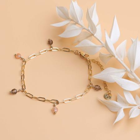 Lindo brazalete en cadena de rectángulos y piedras semipreciosas naturales. Cierre mosquetón.