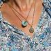 La suavidad de la amazonita cortada en forma de donut para vestir tu escote y añadir un toque moderno y luminoso a tu outfit. También disponible en cuarzo rosa.