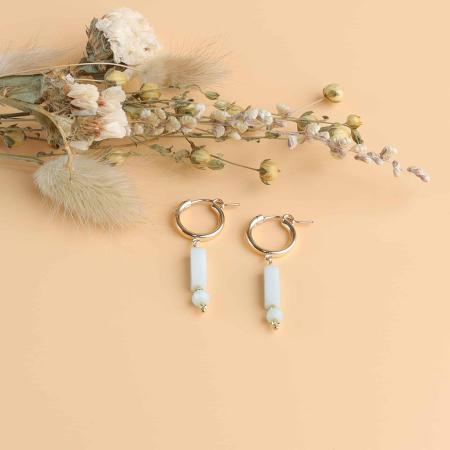 Estos pendientes de amazonita únicos y modernos son el accesorio perfecto para adornar tus orejas. También disponible en ópalo rosa.