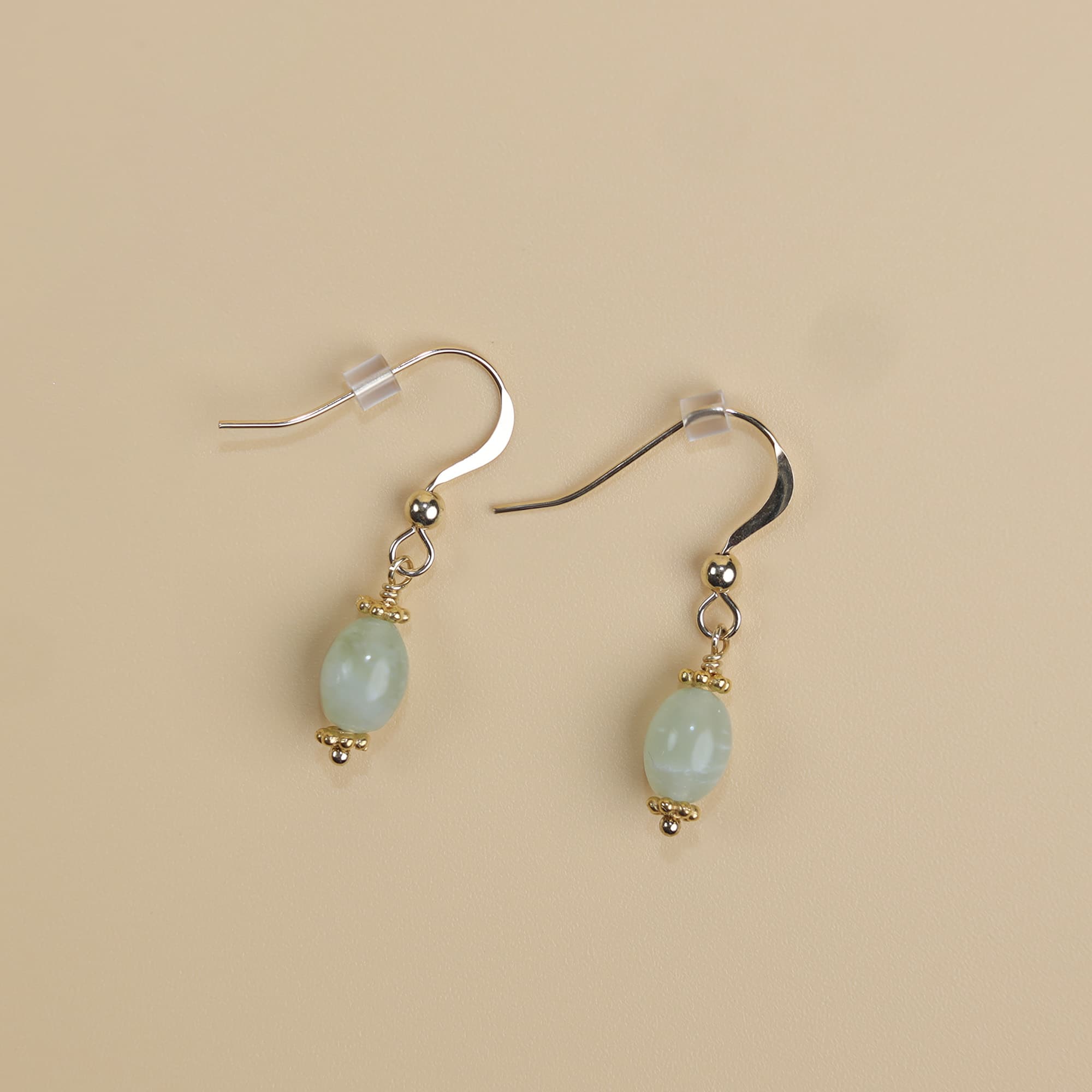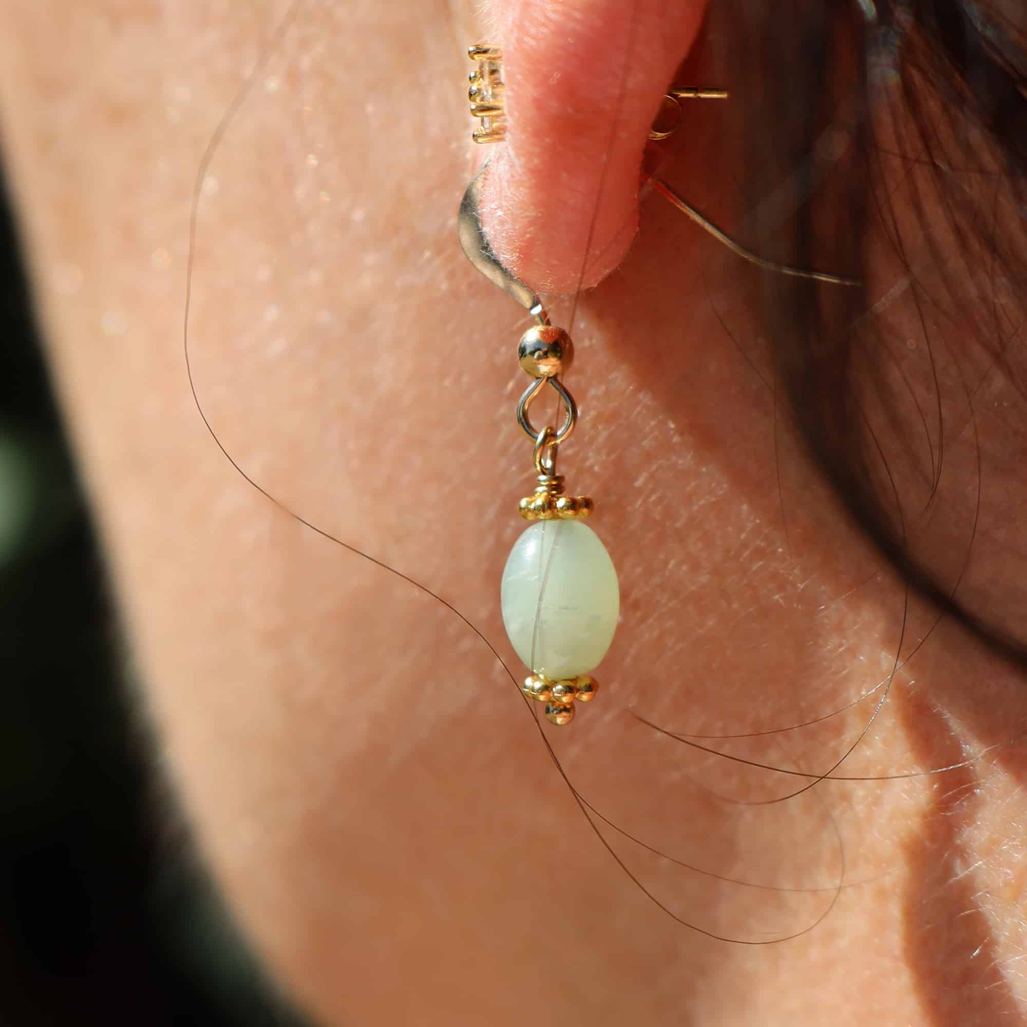 Une pierre fine de Jadéïte beurre olive comme une goutte d’eau … Ces boucles d’oreilles apportent une touche de légèreté et de douceur à votre tenue.