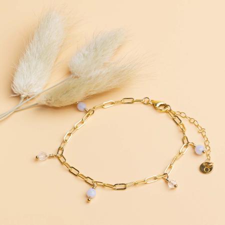 Joli bracelet en chaîne maille rectangle et pierres fines naturelles. Fermoir mousqueton.